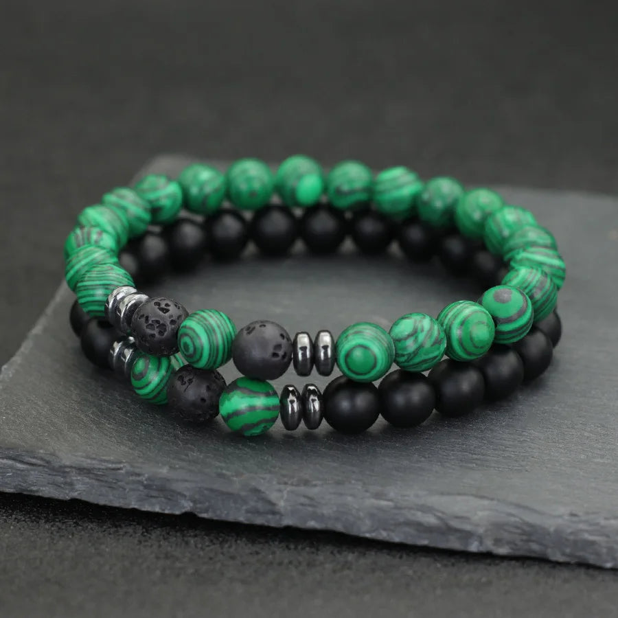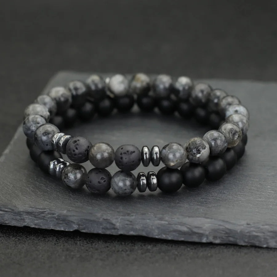 Elevate your style and well-being with this unique bracelet set, crafted from natural stones to promote healing while making a bold fashion statement. Perfect for the modern man seeking balance and empowerment.