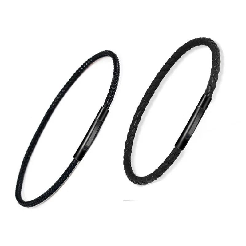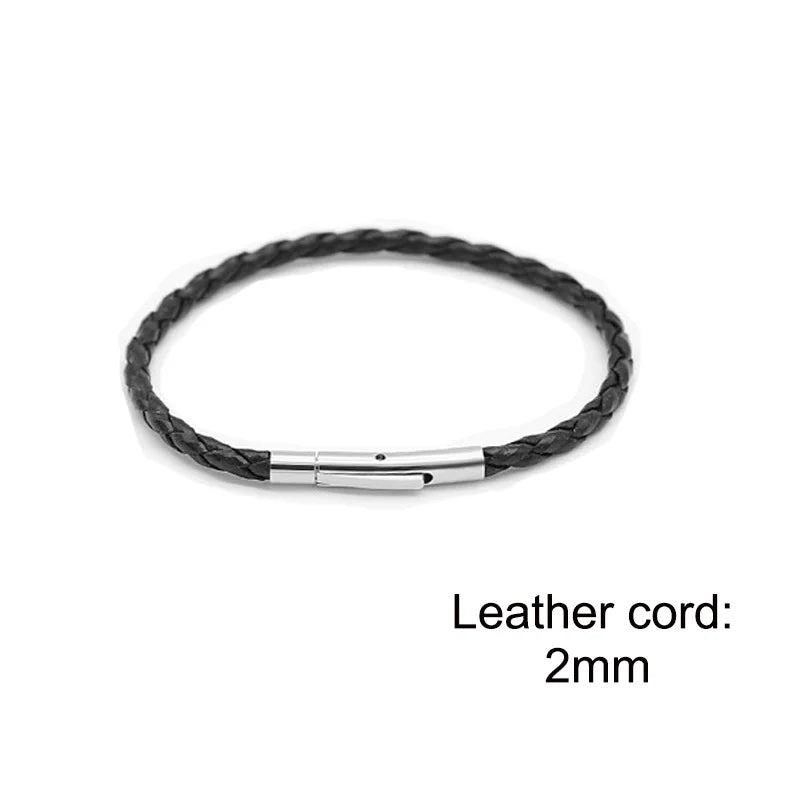 Answer 1: The bracelet is crafted from high-quality genuine leather and robust stainless steel, ensuring durability, elegance, and a hypoallergenic option that is soft against the skin.